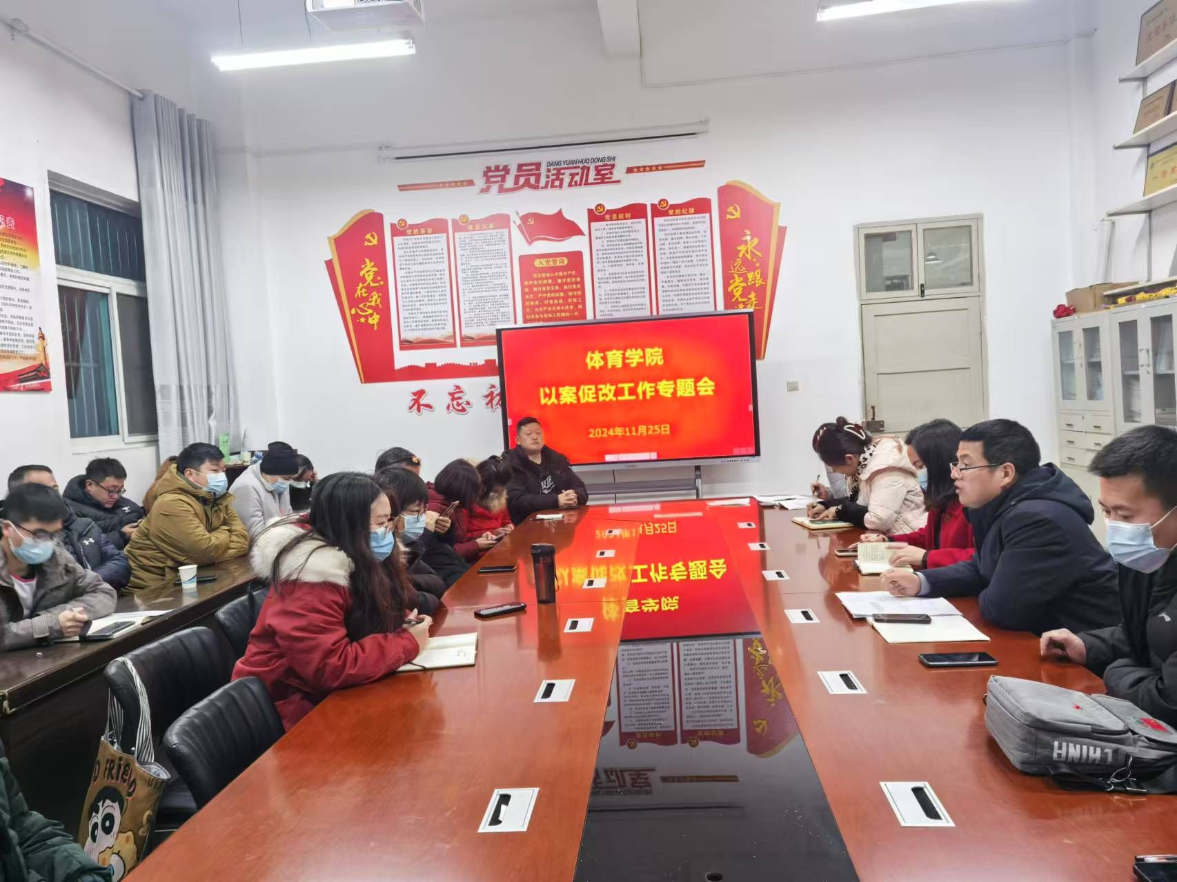 为深入贯彻落实学校以案促改工作方案要求,促进干部履职尽责、担当作为,全面提升学生管理、隐患排查、风险防控、舆情处置的能力与水平。2024年12月25日,澳门网投官方网站党总支在体育馆1楼会议室召开以案促改教育专题会,学院领导班子、全体教职工参加会议,会议由党总支书记韩晔主持。