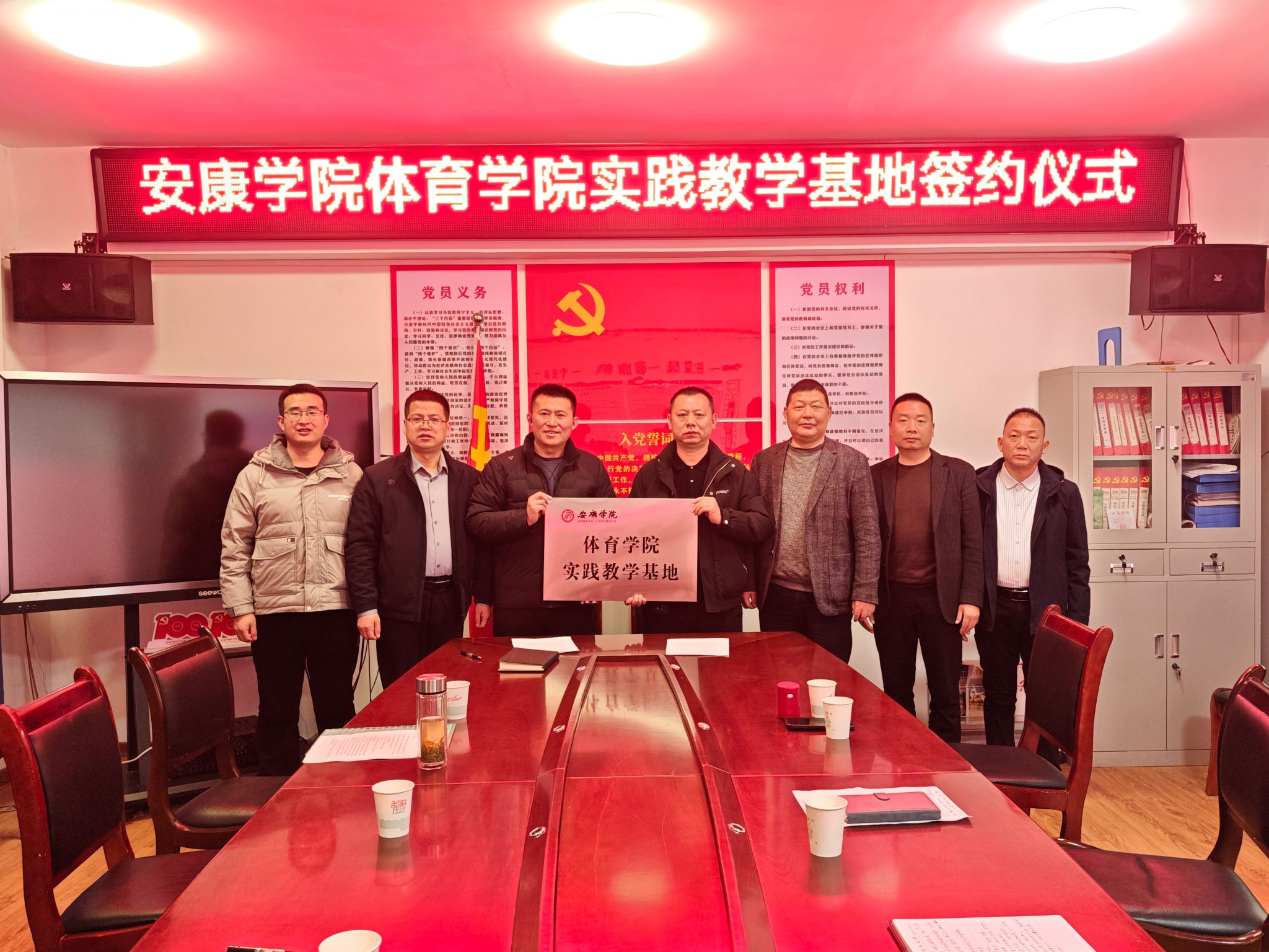 在汉滨区洪山九年制学校,双方代表进行了深入的交流座谈。与会领导分别介绍了两校在办学特色、专业建设及人才培养方面的基本情况,并就未来合作的方向和内容交换了意见。双方一致认为,建立实践教学基地是实现资源共享、优势互补的双赢举措,不仅能为安康学院的在校生提供宝贵的一线教学实践平台,也将为洪山九年制学校的体育教学注入新的活力。座谈会后,澳门网投官方网站副院长郭西魁和洪山九年制学校校长吴作勇代表两校签订了实践教学基地协议书并挂牌。