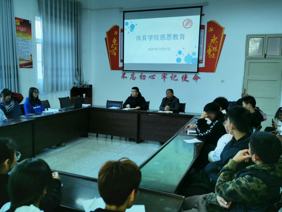 11月18日中午1点,在体育馆1楼会议室,澳门网投官方网站召开感恩教育专题会,党总支书记高立平、学工办副主任王立、团总支书记康梦瑶、各班班长、团支书、副班长、学生会团总支主席团成员、纪检部全体成员参加了会议。会议由团总支书记康梦瑶主持。