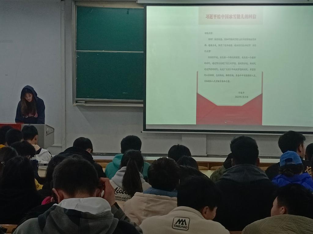 “新时代是追梦者的时代,也是广大青少年成就梦想的时代。希望你们心系祖国,志存高远,脚踏实地,在奋斗中创造精彩人生,为祖国和人民贡献青春和力量。”2022年2月24日,中共中央总书记、国家主席、中央军委主席习近平给中国单板滑雪运动员苏翊鸣回信,向他和中国冰雪健儿取得优异成绩表示祝贺,并提出殷切期望。习近平总书记的回信指明了当代青年的时代使命与奋斗目标,引发我院学子的热烈讨论,大家纷纷表示备受鼓舞和激励。
