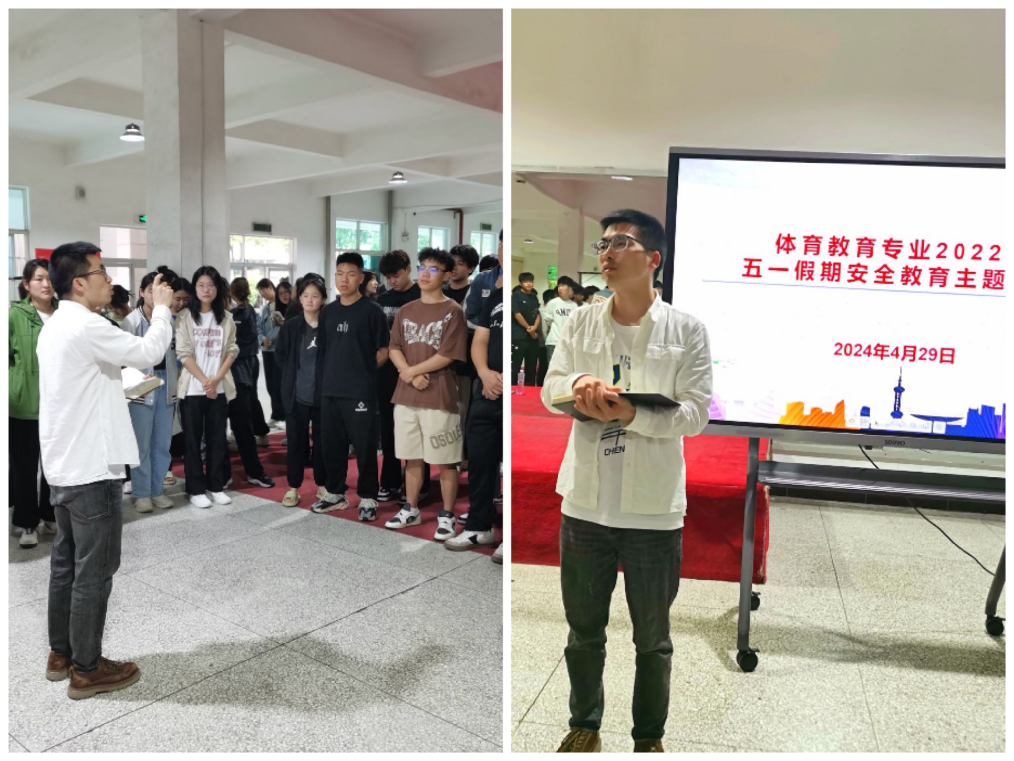 加强宣传教育,强化安全意识。4 月29日晚,我院在体育馆二楼召开全院学生安全教育大会,院长吕仙利向全体同学传达了学校关于“五一”放假的安排和具体要求;副院长郭西魁从国家安全、校园安全、生命安全等方面给同学们做了生动的教育。学院副院长李靖、团总支书记王毅、学工办主任王立、辅导员刘姚成也一起参加了安全教育大会。同时,“我是体育生”公众号上推出“五一出游安全”攻略,引导学生做好防范措施。