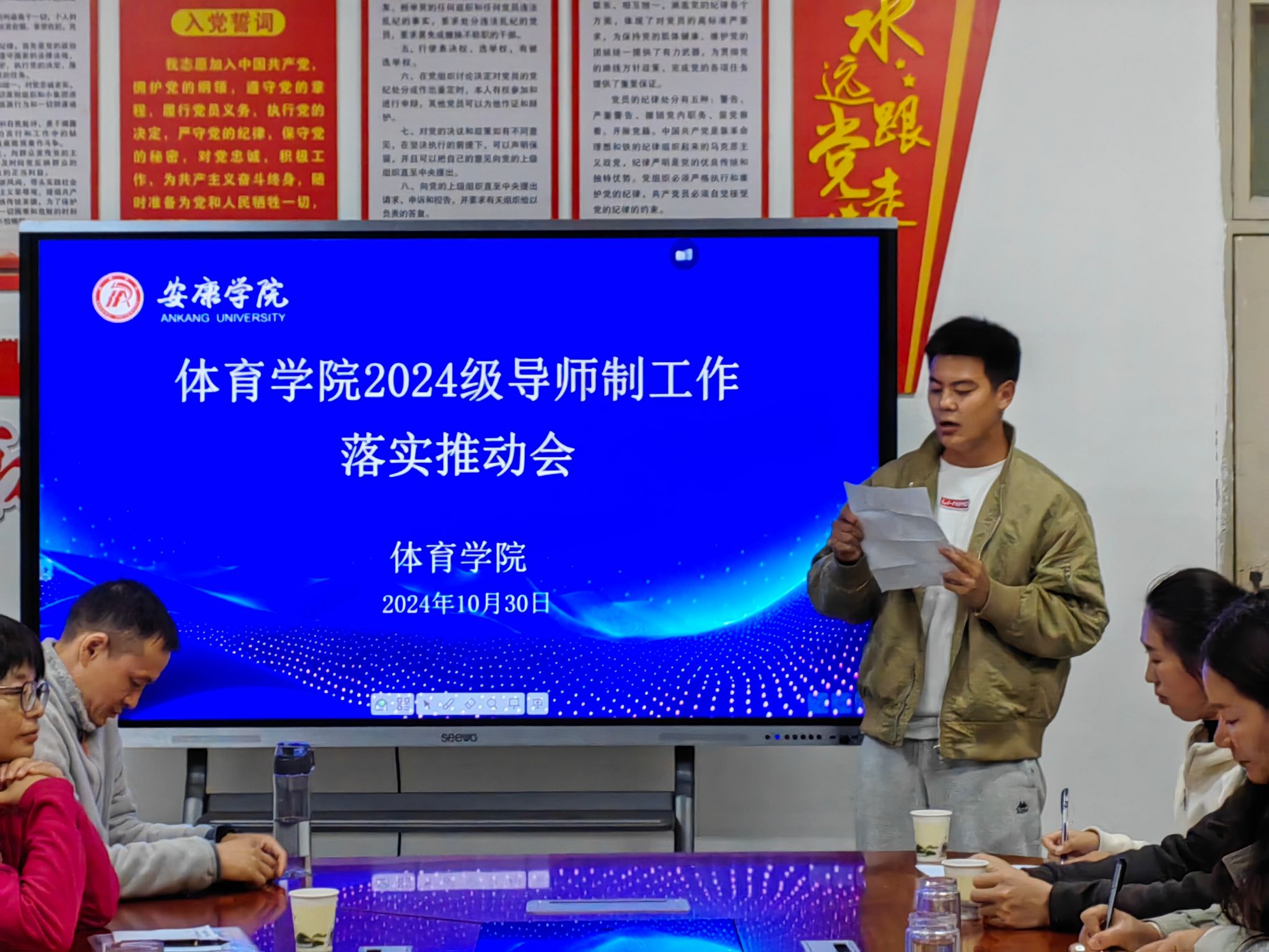 为进一步推进“三全育人”工作落实,助力教师因材施教、学生个性化成长,推动学业导师制落实落细,10月30日下午,澳门网投官方网站在体育馆一楼会议室召开澳门网投官方网站2024级导师制工作落实推进会,学院领导班子、全体学业导师和24级学生代表参加会议,会议由澳门网投官方网站副院长郭西魁主持。