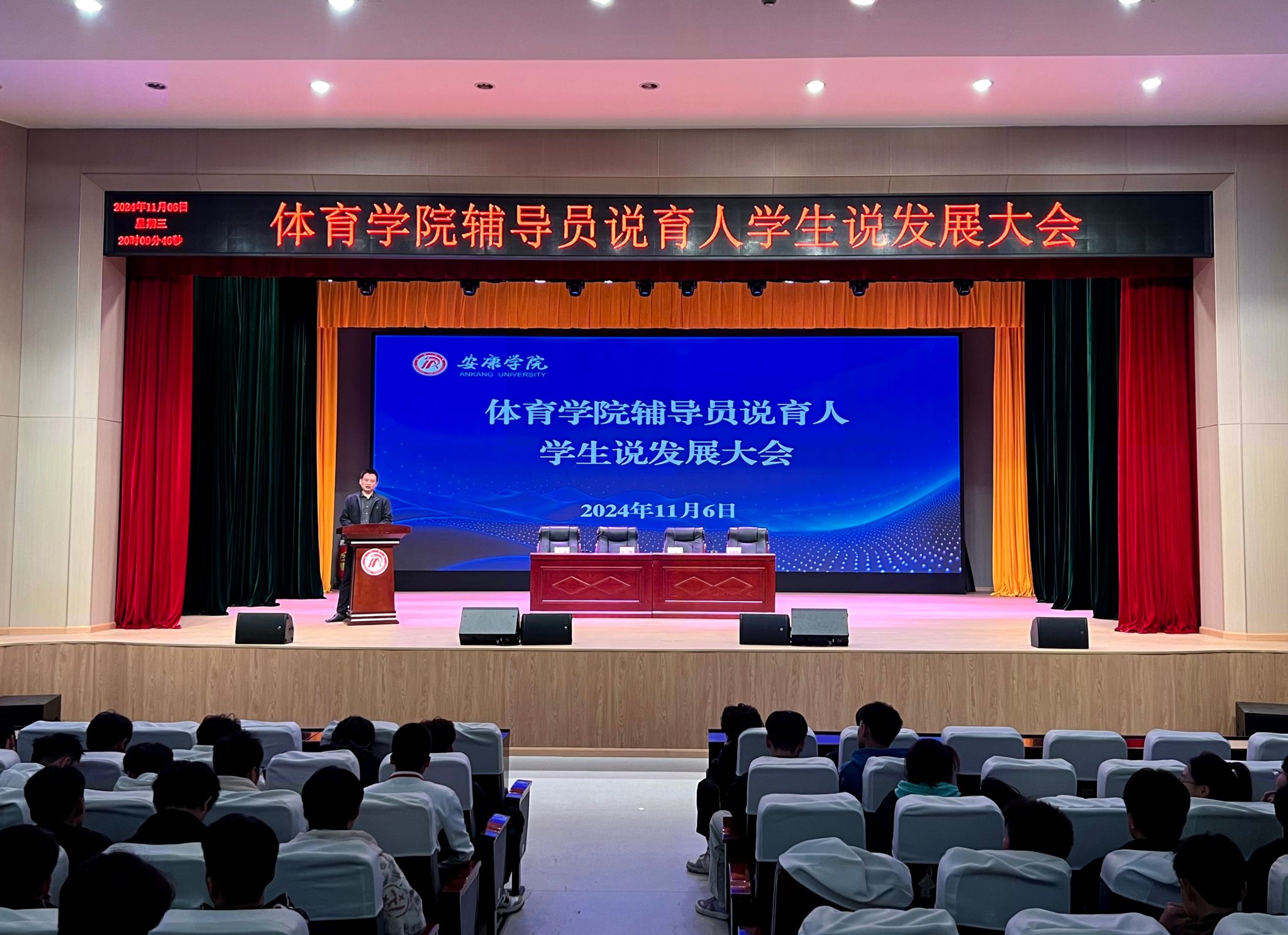 为营造全员参与、积极向上的迎评氛围。11 月6日,澳门网投官方网站在江南校区大礼堂开展了“辅导员说育人,学生说发展”活动。