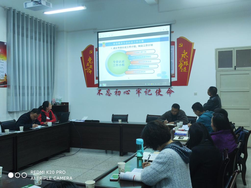 2021年4月14日,澳门网投官方网站体育系在体育馆一楼会议室组织专业认证学习会。澳门网投官方网站院长吕仙利、党总支书记高立平、副院长郭西魁、副院长黎远军以及体育系全体教师参加了此次会议。会议由体育系主任李靖主持。