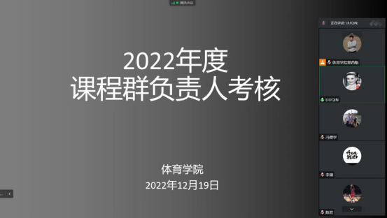 首先,对澳门网投官方网站课程群负责人进行了考核,球类课程群负责人崔晓宇、操舞类课程群负责人陈治强、运动人体科学课程群负责人刘芹和学校体育学课程群负责人赵娇艳分别进行了年度总结汇报,考核组通过听取汇报、座谈和查阅工作记录的方式进行考核,并针对本年度工作中存在的不足对三位课程群负责人进行了现场反馈,并提出了下一步工作建议。