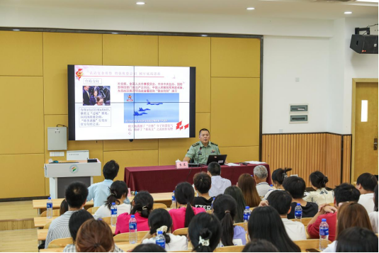 张进城通过分享血汗交织的军旅记忆和思想感悟,重现了那段青春燃烧岁月的点点滴滴,勉励同学们要把个人理想追求融入国家和民族事业发展中,锤炼过硬本领,努力成为堪当重任的新时代好青年。