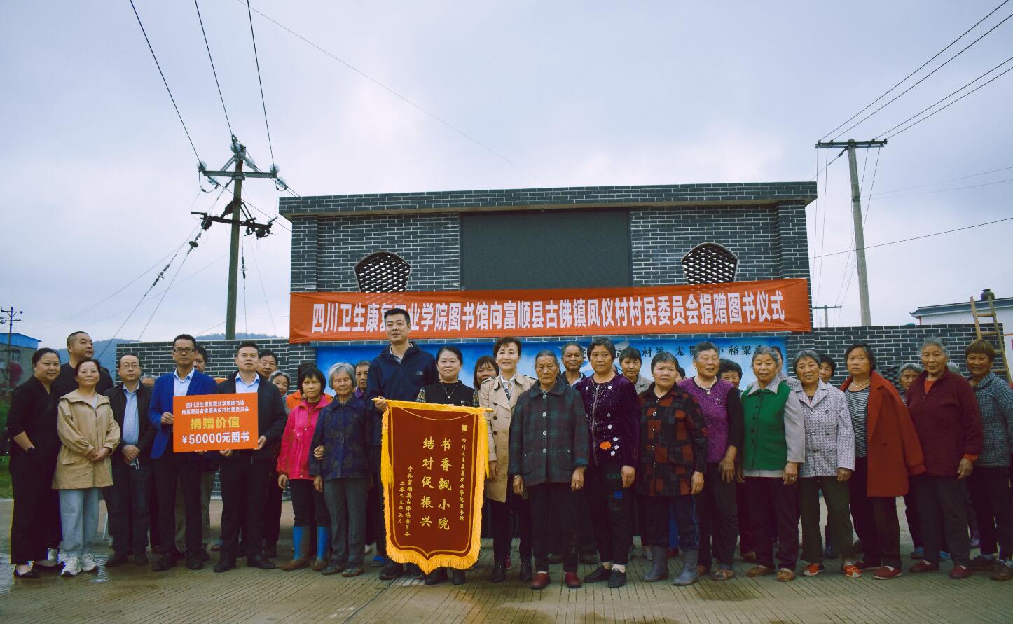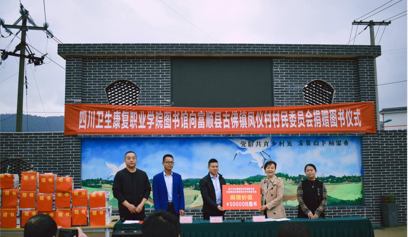 为丰富基层人民群众精神文化生活,满足乡村群众阅读需求,推进全民阅读活动深入开展,助力乡村振兴,文化振兴战略,5月10日上午,学院副院长罗天蔚、图书馆副馆长牛小梅一行8人前往学院对口帮扶的富顺县古佛镇凤仪村开展“送书下乡、助力乡村振兴”活动,第一书记陈翔、古佛镇镇长谢永刚、凤仪村党支部书记田首兵及凤仪村村民代表参加了图书捐赠活动。