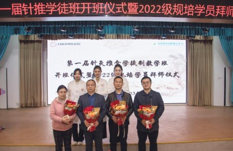 为提高针灸推拿专业人才培养质量,强化康复治疗技术专业群内涵建设,进一步适应医疗机构对针灸推拿专业人才的需求,3月3日bat365官方网站携手自贡市中医医院举办2021级针灸推拿专业首个中国特色学徒制教学班开班及拜师仪式。自贡市中医医院纪委书记李洪宁、学院副院长罗天蔚,医院、学院相关职能部门中层干部出席开班拜师仪式。