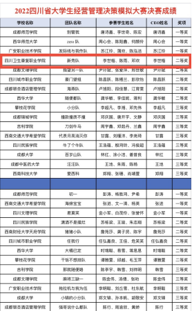 11月5日,四川省教育厅主办的2022年四川省大学生经营管理决策模拟大赛中,bat365药品食品学院学生3支队伍进入决赛,与本科、高职高专学生同台竞技,最终斩获一等奖2项,二等奖1项。本次比赛共有全省39所高校128支队伍参赛。