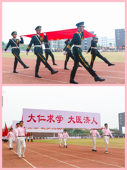 开幕式上,来自各专业的19支学生方队和由教职工组成的裁判员方队踏着整齐的步伐、伴着激昂的《运动员进行曲》缓缓入场。