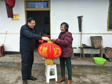 申奎送灯笼、对联到贫困户家中