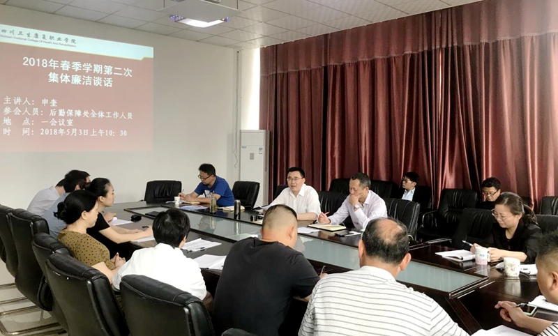 5月3日 ,学院副院长申奎在一会议室主持召开了后勤保障处2018年春季学期第二次集体廉洁谈话。