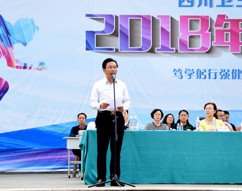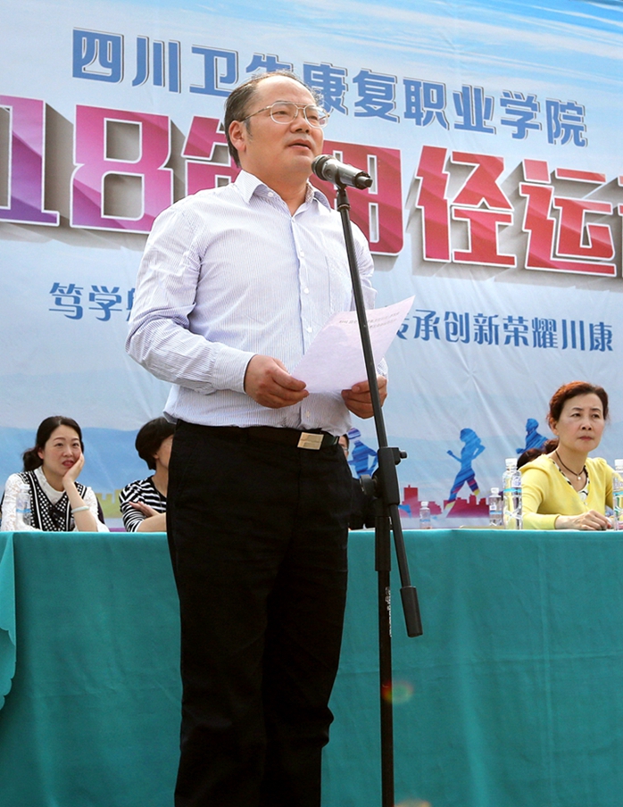 在热烈掌声中,学院党委书记,附属自贡市第一、第四人民医院院长刘建辉宣布运动会比赛开始。