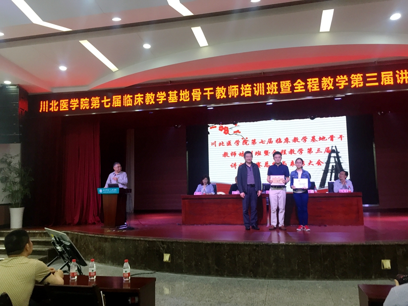 川北医学院全程教学第三届课堂讲课比赛于4月19日至4月21日在自贡市檀木林金陵酒店举行,学院附属一医院和来自全省的7所川北医临床教学基地任课教师参加了本届课堂讲课比赛。学院附属一医院万杰和邱涛老师通过激烈角逐,获得川北医全程教学第三届课堂讲课比赛的一等奖和三等奖。