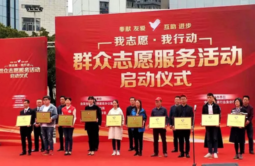 3月5日下午,在自贡市群众志愿服务活动启动仪式暨颁奖典礼上,bat365团委获得“盐都十佳志愿服务组织”称号,团委毛启平和5名学生获得“盐都百名优秀志愿者”称号。