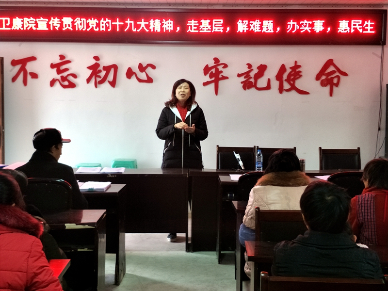 在联合村,李华结合农村工作实际,对前来的贫困户宣讲了“党的十九大”精神,叮嘱他们要保重身体,在当前党和政府的大好政策下,自力更生、敢闯敢干,利用好学院帮扶平台,致力脱贫;要心怀感恩,配合镇村各项工作的开展;要加大对子女的教育,防止下一代返贫,拔出贫根。