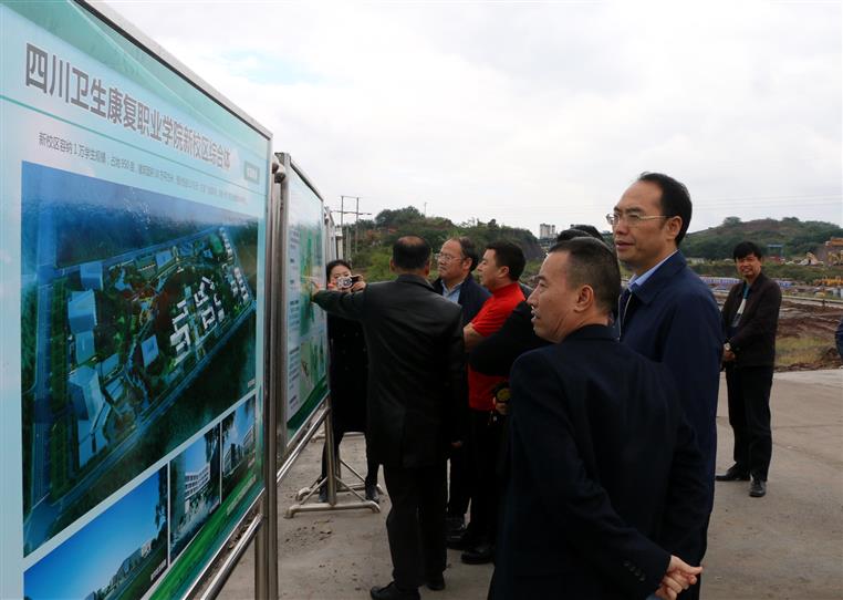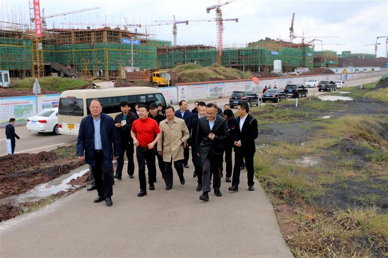 10月23日上午,四川金杯集团董事局主席金杯一行在市人大常委会主任谭豹、市人大常委会秘书长龚焕楷、市卫生计生委主任黄麟等领导带领下考察bat365新校区综合体项目建设情况。