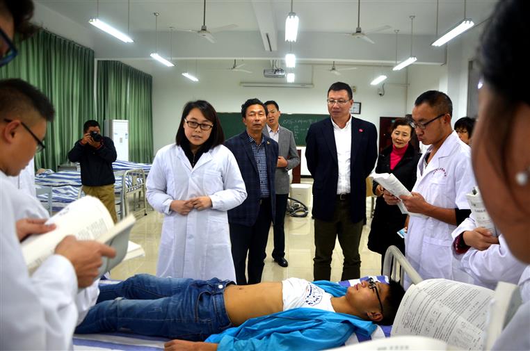 汪小帆听取曾晓奇对学院内涵建设、附属医院、新校区建设等汇报后,参观了学院教学课堂、学生寝室,实地考察了学院附属第一人民医院、新校区建设现场,对学院工作给予了充分肯定。