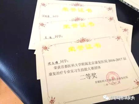 捷报连连兆丰年,2017年2月,学院康复系学生在首都医科大学附属北京康复医院举办的实习生技能大赛中获得了团体二等奖,在德阳市中心医院康复科举办的病案汇报中获得第一名。