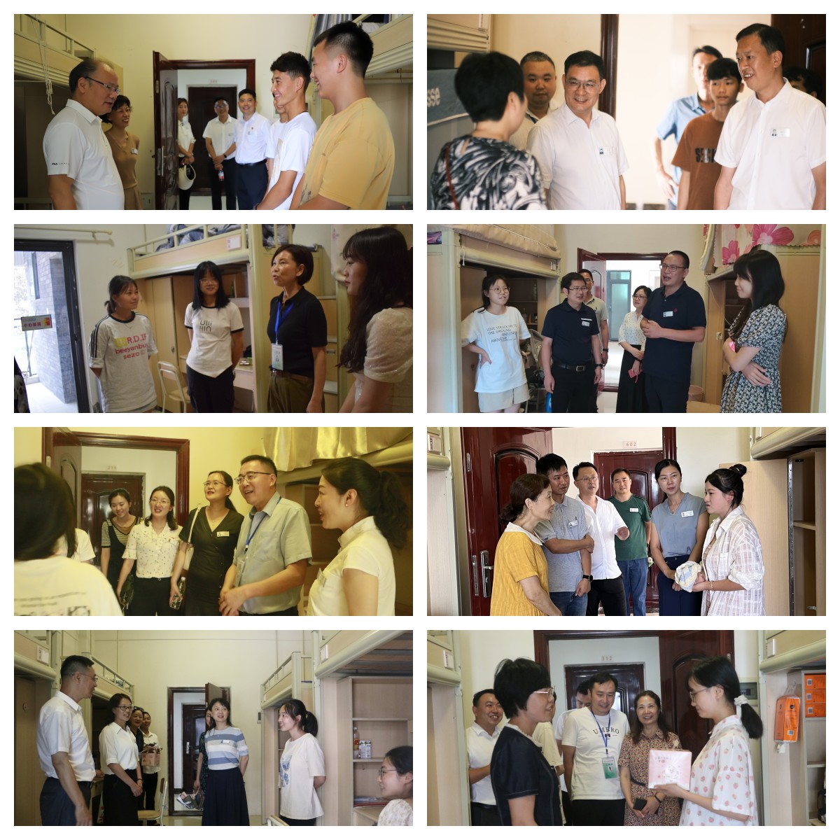 为了让新生第一时间感受到学校的关怀与温暖,帮助新生更好更快地适应大学生活,9月2日,新生报到第一天下午,学校领导及中层干部分为8个慰问小组分别前往学生公寓看望新生。