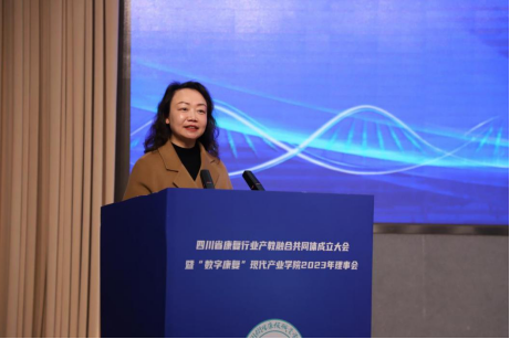 韦媛媛表示四川省康复行业产教融合共同体的成立,对集聚健康养老行业产教资源,促进教育链、人才链与产业链、创新链融合发展,推动“政-行-企-校”联合育人、融合发展具有重要作用。