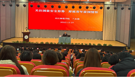 随后,兰永海以“关注国家安全形势厚植青年家国情怀”为主题,紧扣当前我国国家安全面临的新形势、新特点、新现状和我国改革强军伟大实践重点领域话题,从“不可不察-我国周边国家安全环境、安不忘危-改革强军固国防、强国有我-厚植青年家国情怀”三个层面进行了详细介绍。兰永海鼓励广大青年学子要了解时代国防教育主题,向着复兴目标勇毅前行,要崇军尚武,厚植家国情怀,进一步深化了师生对我国国家安全形势和巩固国防使命担当的了解和认知。