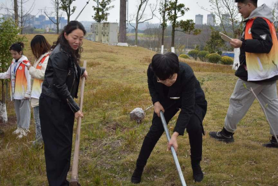 3月13日下午,以“植廉践廉 树木树人 锚定双高 提质进位”为主题的植树节活动在学校“清风杏林”举行。学校党委委员、副校长章荣,学校党委委员、纪委书记李雁梅,纪检监察处、校团委、后勤基建处相关人员,新教师代表、学生志愿者共80余人参加。