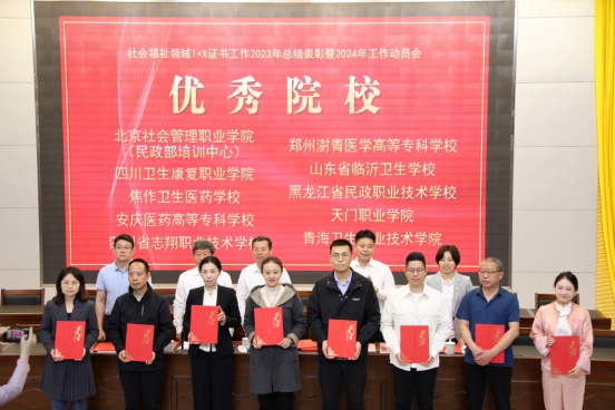 4月9日,教育部第二批职业教育培训评价组织2023年社会福祉领域1+X证书工作总结表彰会暨2024年证书工作动员会在广州举行,bat365获得“2023年度社会福祉领域1+X证书制度试点工作示范院校”“2023年度社会福祉领域1+X证书制度试点工作优秀院校”两项荣誉,另有房娟、蔡莉等四名老师获得“优秀师资”和“优秀考务工作者”。