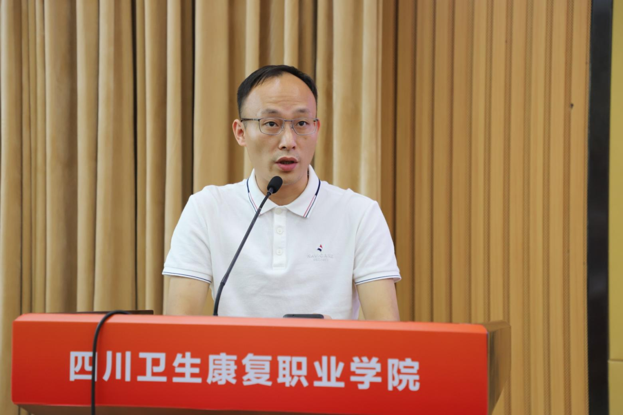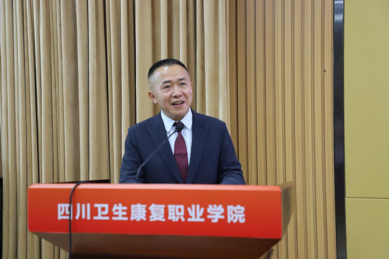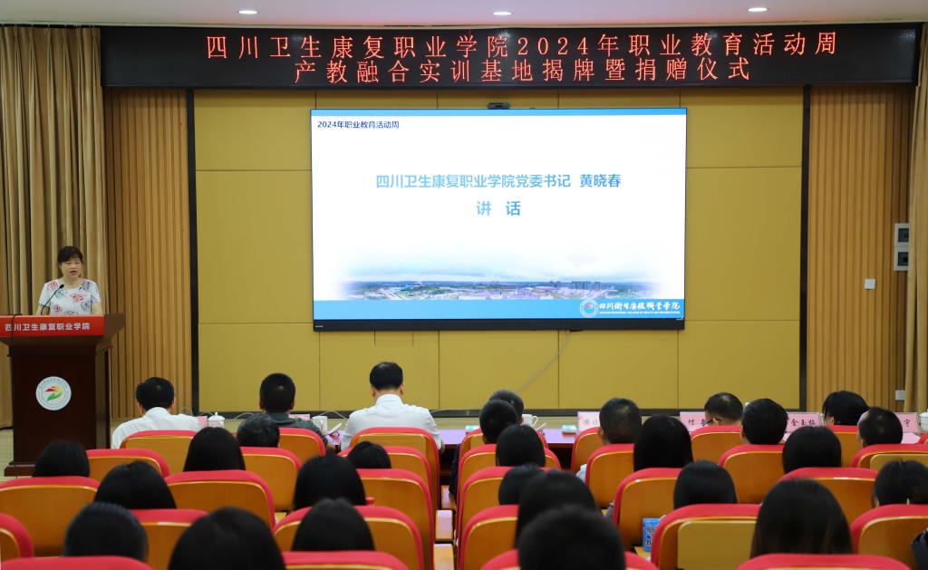 自贡市市场监督管理局药品医疗器械化妆品监管科科长何兵、健之佳医药连锁集团股份有限公司集团董事长总裁蓝波、成都医加医光学有限责任公司总经理付新和学校党委书记黄晓春、校长黄昌平、副校长罗天蔚等来自政府、企业和学校的相关部门、师生代表共同参加了活动。大会由副校长申奎主持。