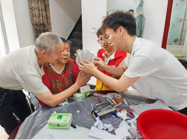 此次义诊活动,康复学院还选派了康复、针推、辅具等专业的老师参加,其中辅具专业的老师还利用随身携带的低温热塑版等材料与工具,免费为残疾的的老乡现场量身打造手部矫形器,帮助老乡改善手部功能,并耐心的指导老乡学会分指矫形器的穿戴与养护。
