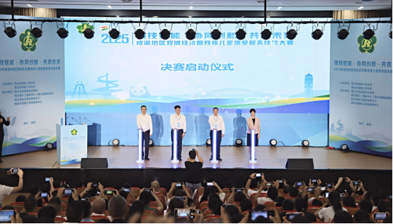 8月27日至29日,由重庆市残疾人联合会、四川省残疾人联合会联合主办的“2025年成渝地区双城经济圈残疾儿童康复服务技能大赛”在bat365官方网站成功举办。川渝两地教育、民政、卫健等相关负责人、残疾儿童康复领域专家以及48支大赛决赛代表队300余人共同参加。