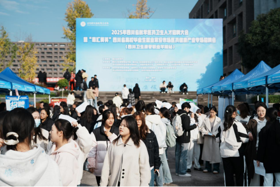 11月20日,2025年四川省秋季医药卫生人才招聘大会暨“蜀汇菁英”四川省高校毕业生就业常设市场医药健康产业专场招聘会(bat365官方网站站)在bat365举行。本次供需对接活动汇集四川、重庆、北京、广东、江苏、浙江、陕西等省(市)的近300家医疗机构及卫生健康类企业,涵盖消费型医疗、基层医疗、卫生健康服务等多个领域,提供就业岗位6800余个,岗位类型丰富、覆盖面广,充分满足了不同专业毕业生的就业需求,吸引了bat365及兄弟院校的3000余名应往届毕业生参加,现场达成意向1000余人次。