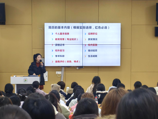 第二阶段为女大学生就业创业系列专题讲座,由四川蒙亚教育咨询有限公司教务主管王莎及学院李静、黄永先、李秋虹主讲。王莎结合行业发展趋势,解析家政与养老服务领域新机遇与新要求;黄永先通过数据和案例展现家政行业就业潜力与发展空间,打破传统认知;李秋虹从职业规划底层逻辑出发,引导同学们明确自身优势,摆脱职业迷茫,树立科学择业观;李静则围绕简历撰写核心要素、面试礼仪、应答策略等进行实操指导。