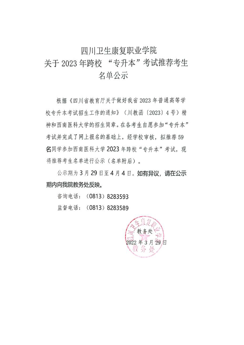 下一条:bat365官方网站关于2023年专升本推荐考生名单公示(成都中医药大学、成都文理、四川轻化工大学、宜宾学院)
