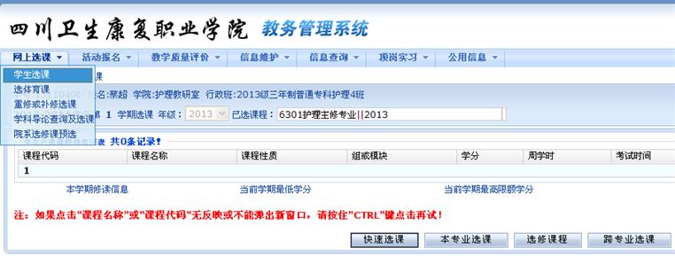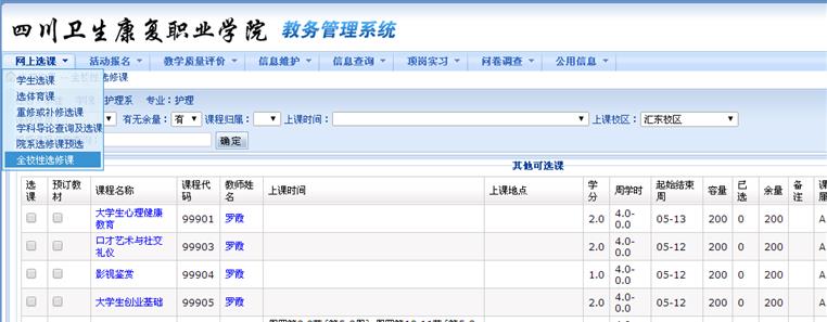 4、学生选课时要及时向专业指导教师、院系教务工作人员咨询有关情况,遇有问题多请教,避免盲目选课。