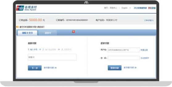 Step3:进入中国银联在线支付平台根据提示一步步完成支付即可。