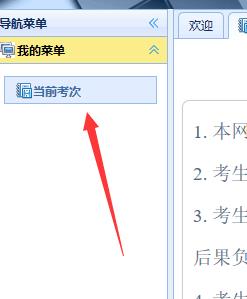 (2)用注册账户登录→→点击“导航菜单''里面的“我的菜单''→→点击“当前考次''。