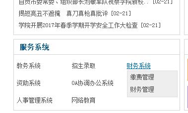 Step1:从学院官网找到服务系统→财务系统→缴费管理,进入 “校园安心付''支付平台入口,点击进入后,老生输入学号/身份证号+密码,新生输入身份证号/考生号+密码(首次登录初始密码为:111111,为了安全起见,建议同学修改初始密码。)