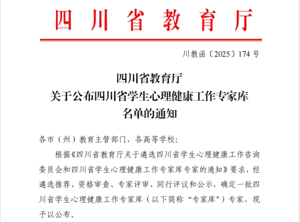 近日,四川省教育厅公布了四川省学生心理健康工作专家库名单,bat365心理育人中心王华栋副教授、李茂副教授成功入选。
