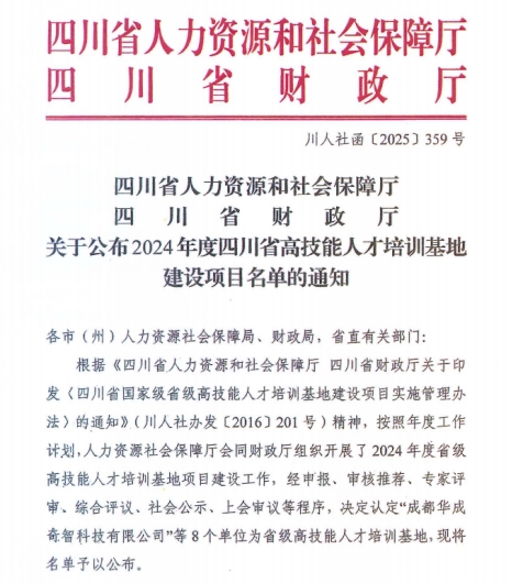 近日,四川省人力资源和社会保障厅公布了2024年度四川省高技能人才培训基地建设项目名单,bat365成功入选。