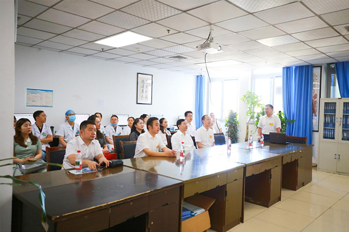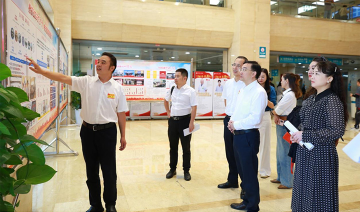 在新大楼大厅,张乐副院长一行听取医院高质量发展情况汇报,对医院近年来取得的成绩给予充分肯定。