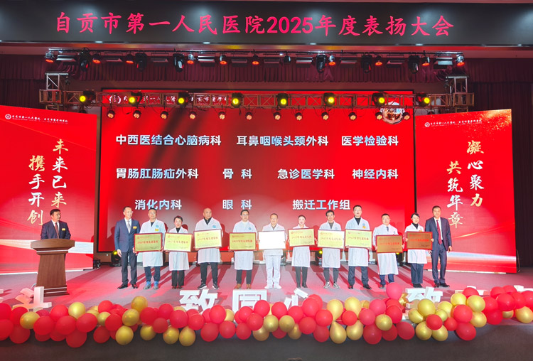 表扬大会上,医院领导为获得2025年度的先进集体、先进个人、“忠诚一院人”以及获评市级、省级临床重点学科、省级区域医疗中心的科室颁发了荣誉奖牌、证书和奖杯,并勉励他们要充分发挥先进的模范带头作用,为医院高质量发展、健康自贡、健康四川做出新的更大贡献。