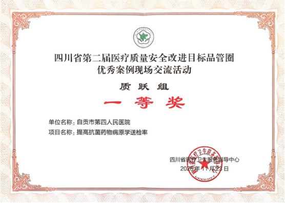 近日,在四川省第二届医疗质量安全改进目标品管圈大赛中,市四医院感染管理科申报的《提高抗菌药物治疗前病原学送检率》项目,从全省百余个参赛项目中脱颖而出,荣获决赛“优秀案例一等奖”。