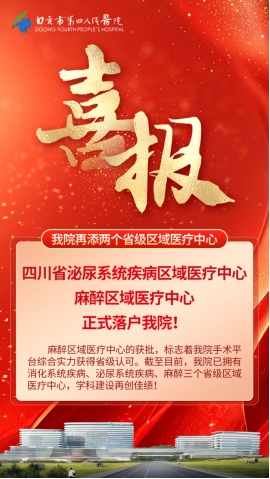 近日,市四医院医疗学科建设再获突破,成功获批“四川省泌尿系统疾病区域医疗中心”与“四川省麻醉区域医疗中心”。两项省级区域医疗中心正式落户,标志着医院在相关领域的诊疗能力、技术水平与平台建设获得了省级层面的高度认可。