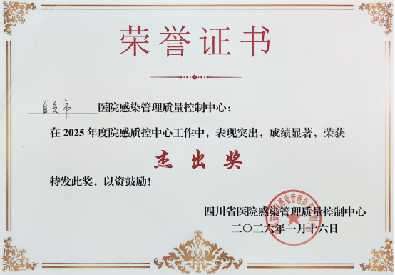 该奖项体现了中心在年度工作中取得的突出成效,展现了本地医院感染防控管理工作的较高水平。