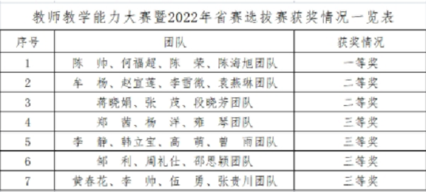 此次教师教学能力大赛暨2022年省赛选拔赛旨在为6月份四川省教师教学能力大赛做赛前热身,参赛团队由各二级学院遴选推荐,共7支教学团队参与角逐。经过评委线上资料评审和现场比赛评审两个环节,最终基础医学院陈帅、何福超、陈荣、陈海旭团队荣获比赛一等奖,展现了年青一代基础教师开拓进取,不断创新的风采。