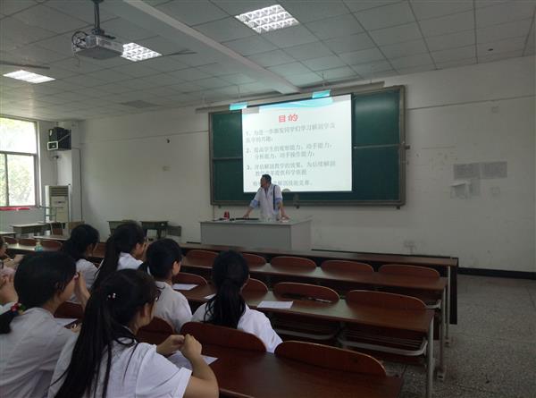 接着基础医学部解剖教研室主任吴波介绍了比赛流程和规则。比赛参考技能考试模式,由解剖教研室教师担任评委和监考,采用充分涵盖解剖学中重点知识的20个标本模型作为考试题目,同学们通过30秒时间的观察,独立轮转答题。比赛有2016级护理专业10个班、助产专业3个班和临床专业4个班共95人参赛。因各专业对解剖知识的掌握要求不同,所以比赛对临床专业独立设置题目,分开评奖,以示公平公正。
