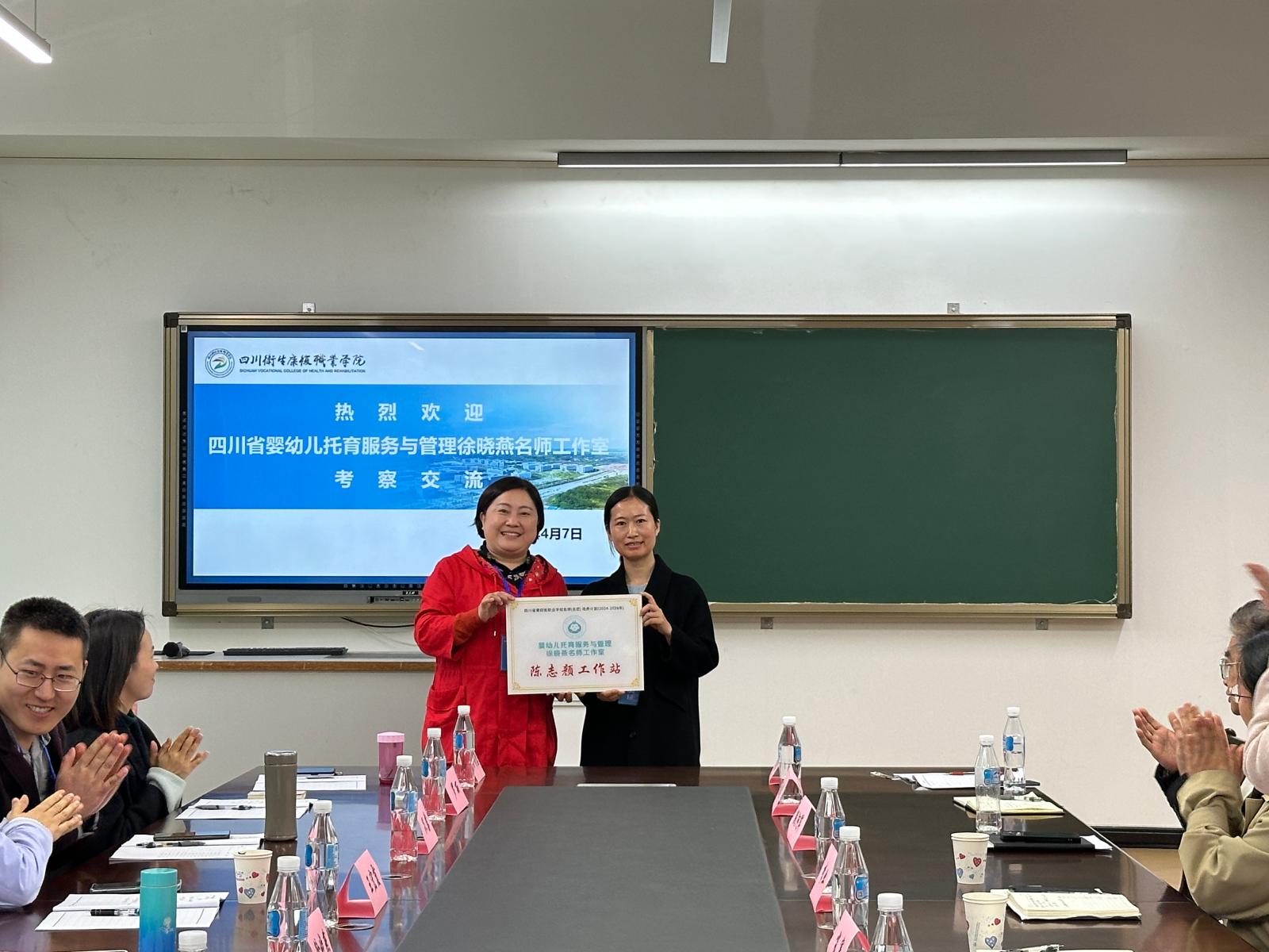 讲座结束后,双方教师围绕两校的课程思政建设情况展开交流研讨。活动最后四川省婴幼儿托育服务与管理徐晓燕名师工作室负责人向工作室成员基础医学院陈志颜老师授牌名师工作站。