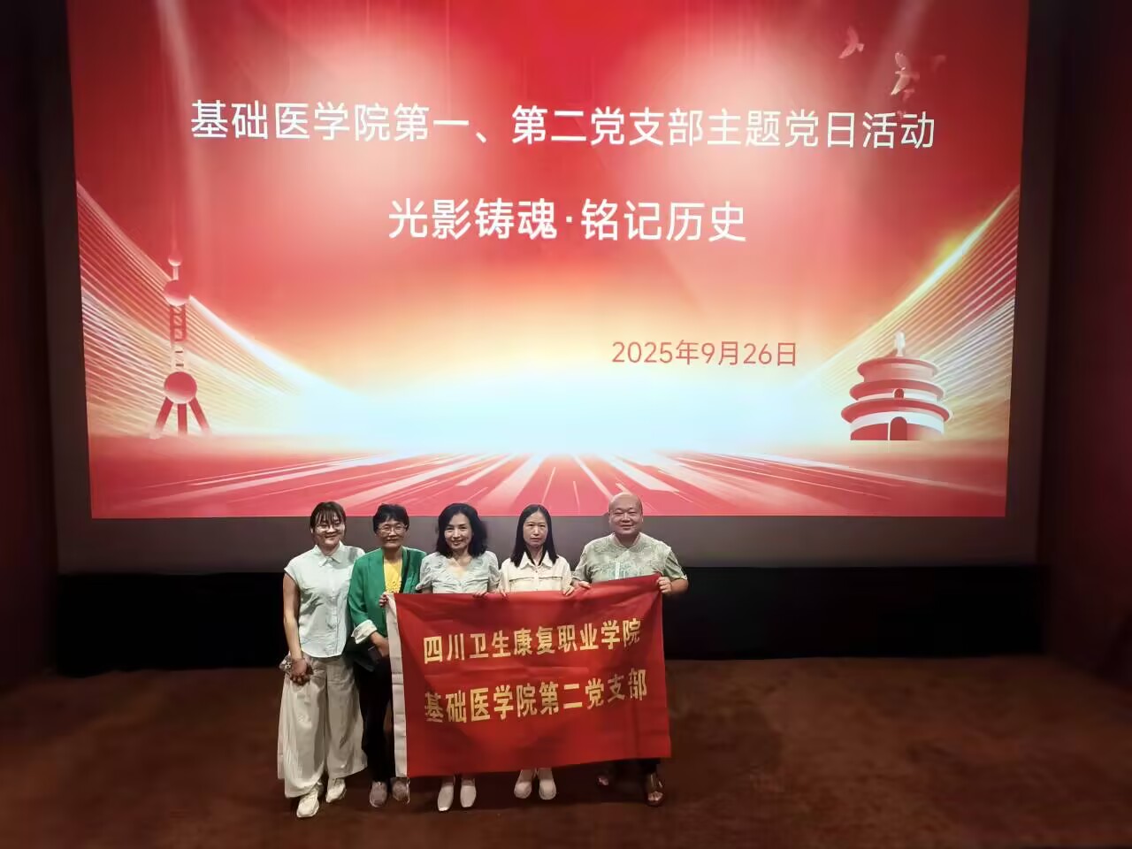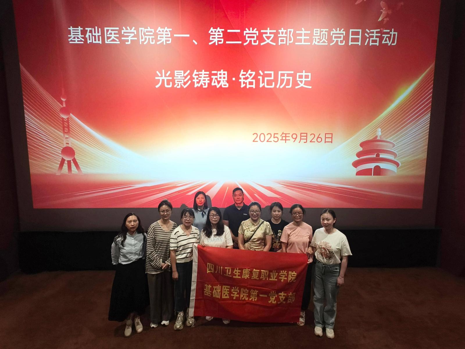 为纪念中国人民抗日战争暨世界反法西斯战争胜利80周年,深切缅怀革命先烈,弘扬伟大抗战精神,9月26日,基础医学院党总支在南湖星维国际电影城组织开展“光影铸魂 铭记历史”主题观影活动,本次活动以沉浸式观影教育为载体,引导全体党员教师重温民族苦难历史,深刻认识中国共产党在抗日战争中的中流砥柱作用,从艰苦卓绝的奋斗历程中汲取精神力量,进一步坚定理想信念、筑牢信仰根基、补足精神之钙,切实增强作为新时代医学教育工作者所肩负的历史使命与政治责任。