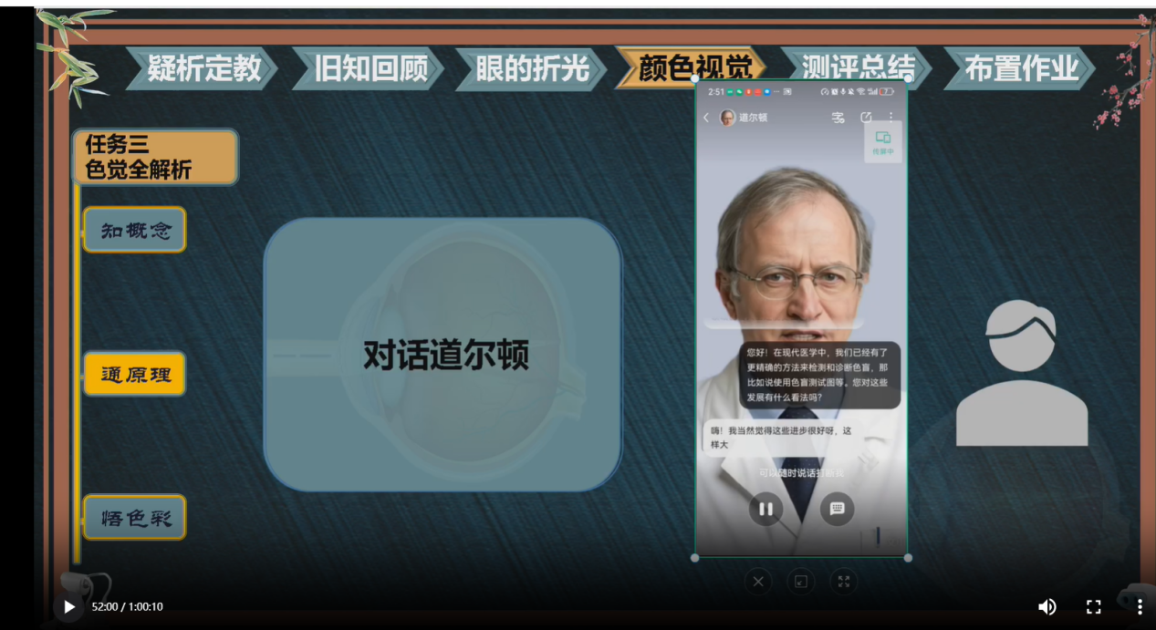 研讨环节亮点纷呈。学生代表反馈:"虚拟实验让抽象的折光原理变得直观,小组协作完成思维导图的过程提升了我们的数字素养"。教师研讨:围绕"如何平衡虚拟实验与实操训练课时比例"展开深度交流,形成"课前虚拟认知→课中实训练习→课后AI巩固"的教学共识